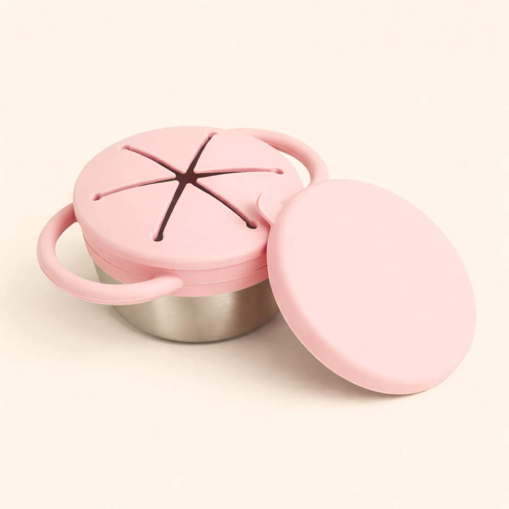 With a soft silicone lid, easy-grip handles, and a durable stainless steel bowl, it keeps snacks contained while your toddler happily feeds themselves.